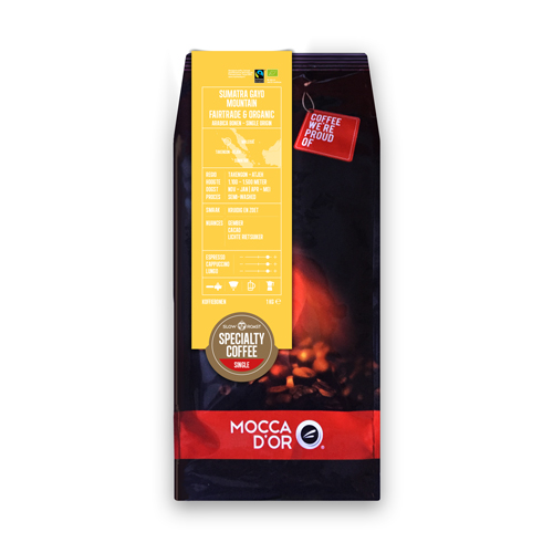 De Sumatra Gayo Mountain is een krachtige Single Origin koffie bestaande uit 100% Arabica bonen; Fairtrade gecertificeerd en biologisch. Deze koffie is kruidig en zoet van smaak met nuances van gember, cacao en lichte rietsuiker. De Sumatra Gayo Mountain komt van het Indonesische eiland Sumatra, wat letterlijk ‘eiland van goud’ betekent. De koffieplanten groeien rondom de stad Takegon en het meer Tawar, op hoogtes van 1100 tot 1500 meter en worden verbouwd zonder chemische bestrijdingsmiddelen.